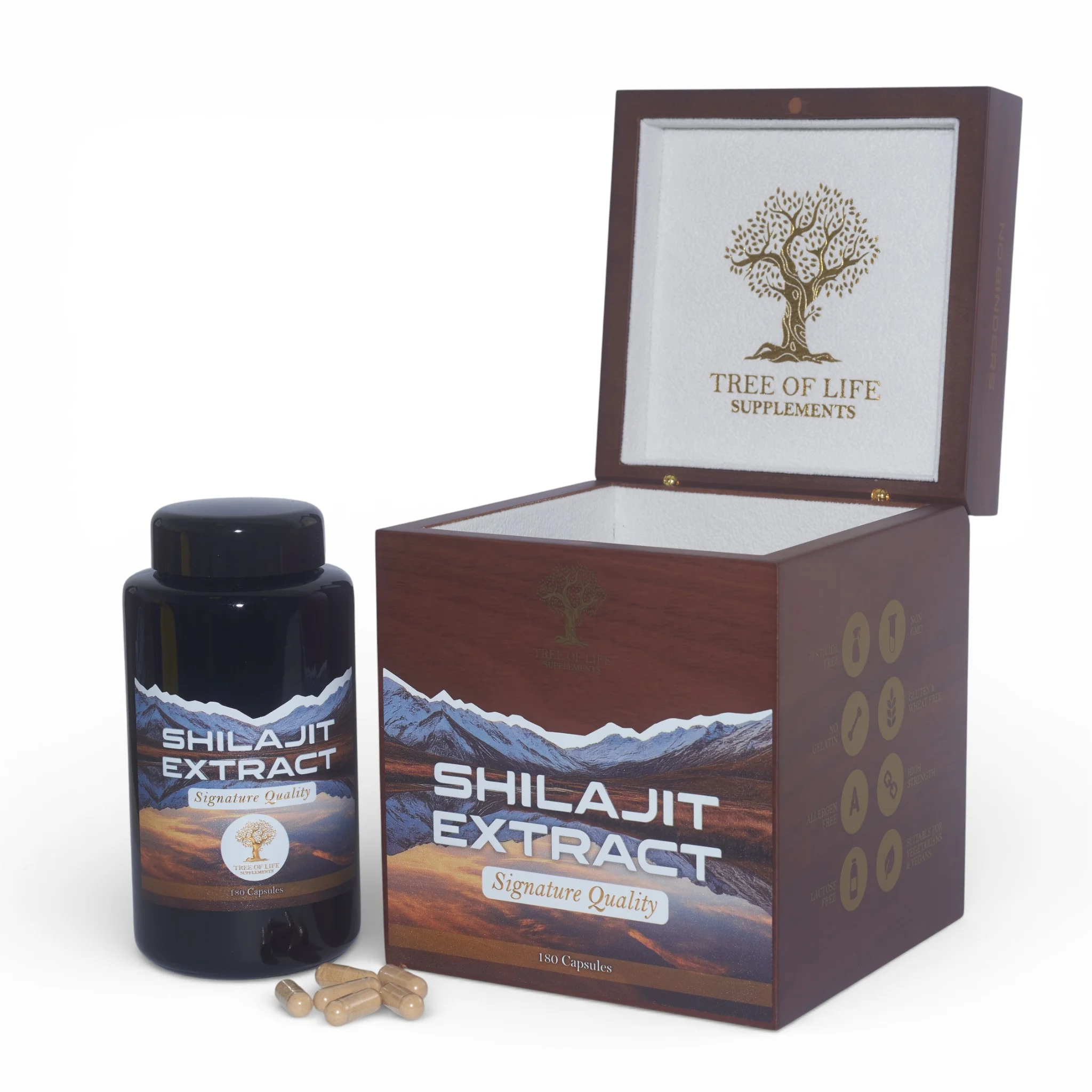 Ingredients: Each Capsule has 6000mg ( 600mg 10:1)  Shilajit Extract In natural Pullulan capsules.